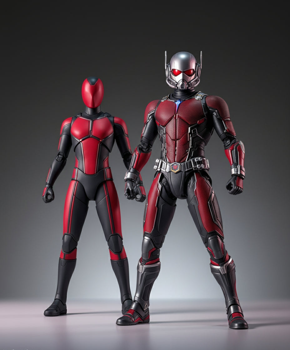 Detailed Ant-Man figure with quantum realm effects and red and black suit. Features removable helmet and size-changing accessories.