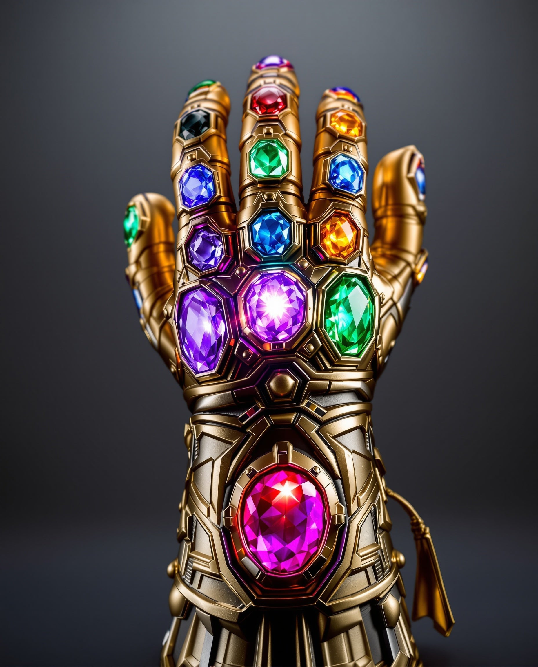 Mad Titan Thanos with completed Infinity Gauntlet featuring LED-lit Infinity Stones. Massive figure with incredible detail and articulation. Includes alternate snapping hand and Titan throne base. The ultimate Marvel villain collectible.