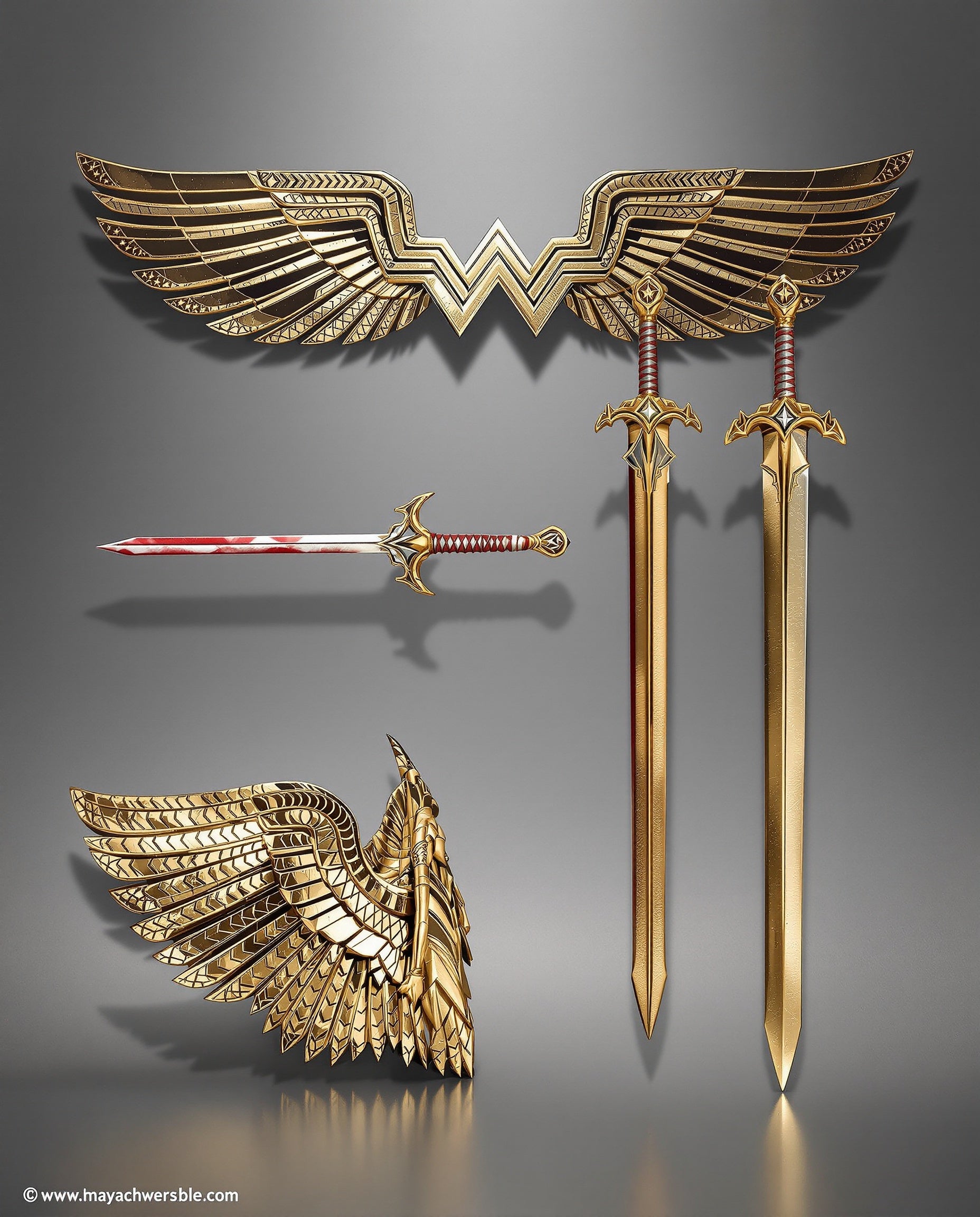 Gal Gadot Wonder Woman in golden eagle armor from WW84. Features intricate golden armor details, Lasso of Truth with wire, and warrior accessories. Includes alternate tiara and multiple expressive head sculpts.