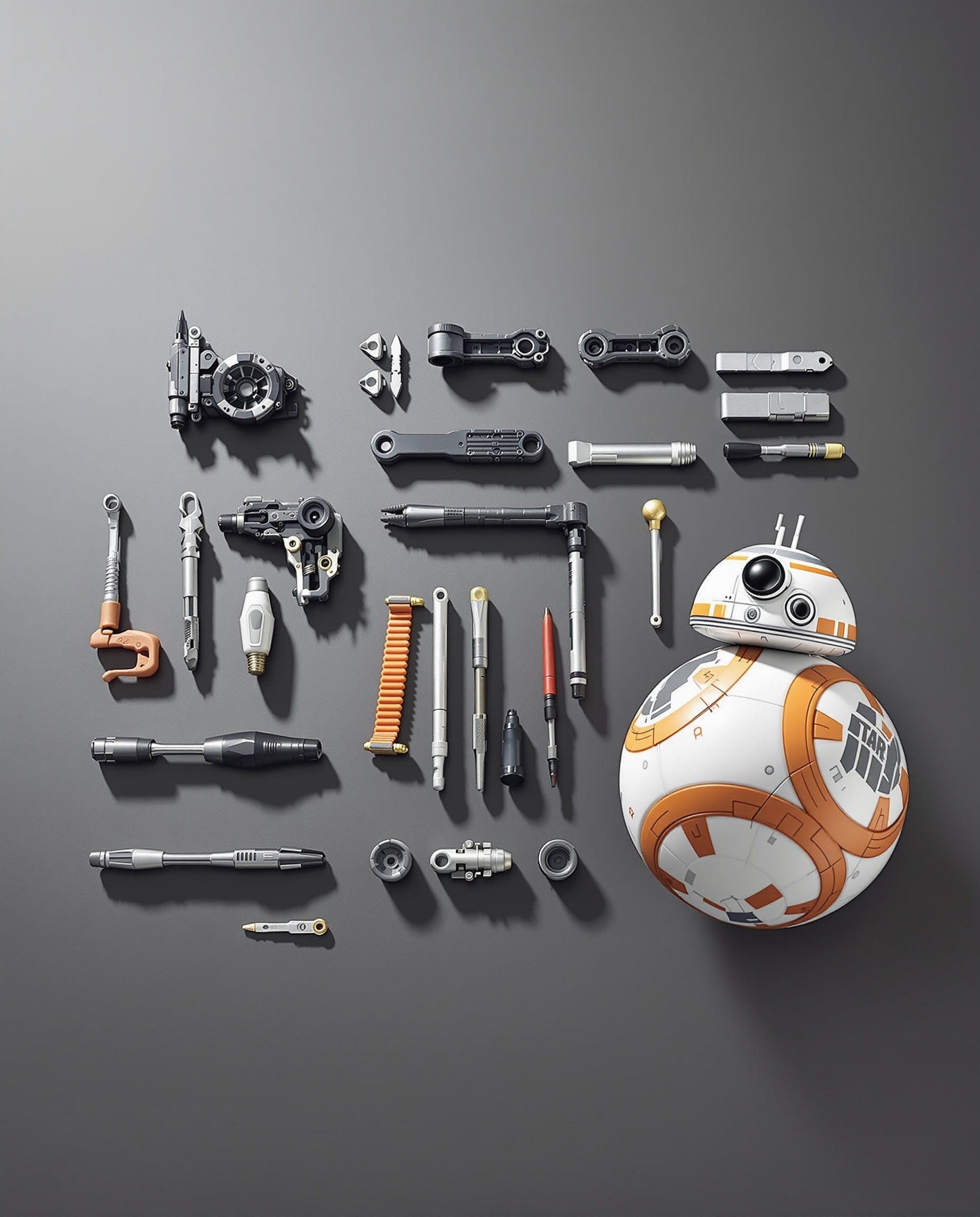Adorable BB-8 figure with spherical droid body and rolling mechanism. Features light-up dome and sound effects.
